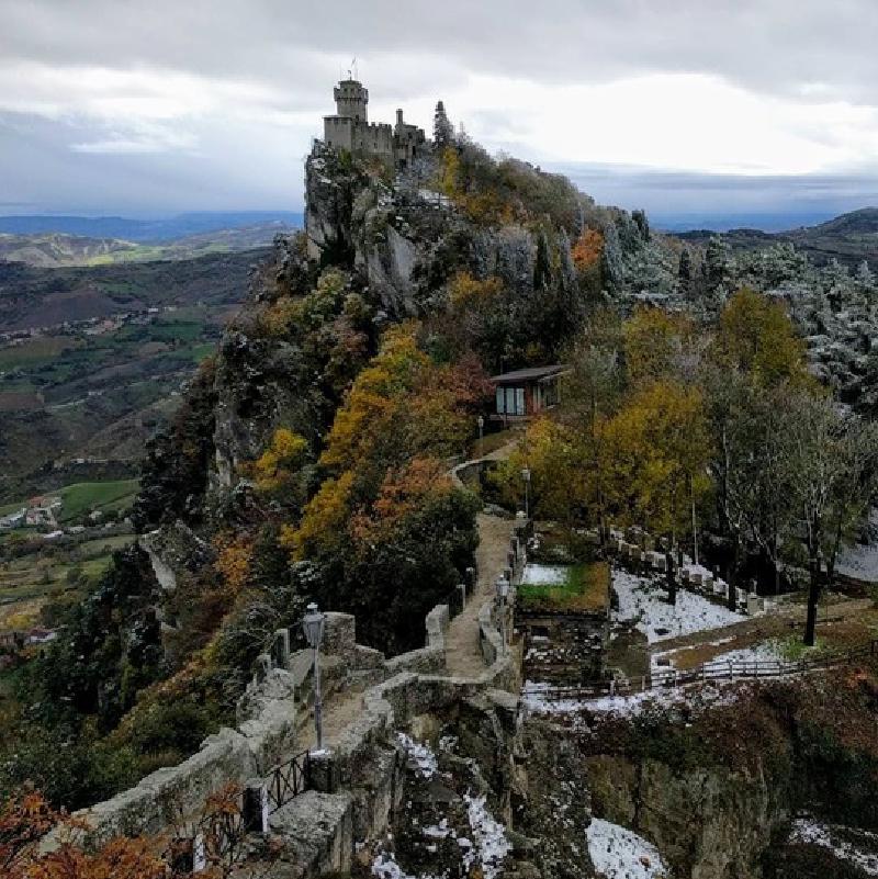 I wasn’t ready for the snow in San Marino. I did have cold weather clothes on but, still: snow. In hindsight, of course it snowed. It was rainy and cold in Rimini and San Marino is on top of a hill. It did make for some beautiful photos, however.