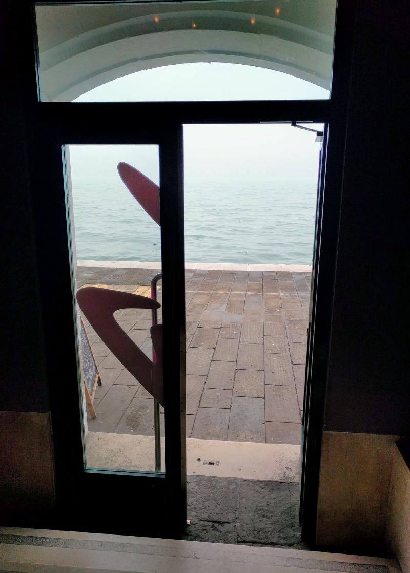 Leaving Ljubljana was delayed. The bus arrived in Venice after dark. The public transit workers were also on a partial strike. Getting to the island the hostel was on was challenging but not overly difficult. Being night time, it wasn’t as apparent how close to the water the hostel was. The next morning I came down the main stairs to this.